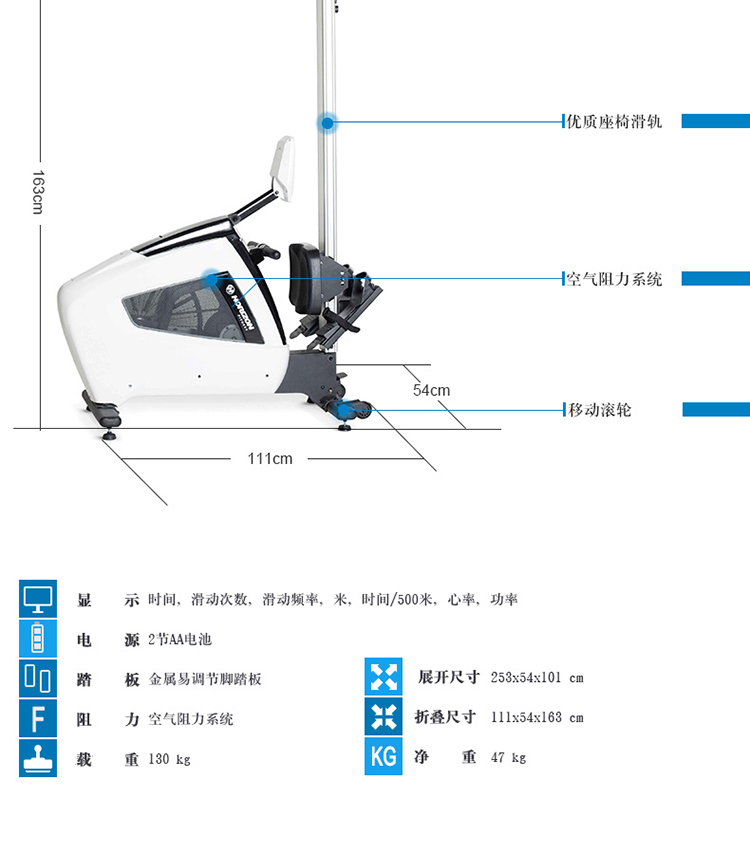 喬山劃船機(jī)家用款OXFORD 5風(fēng)控阻力可折疊高端健身器材 運動器材