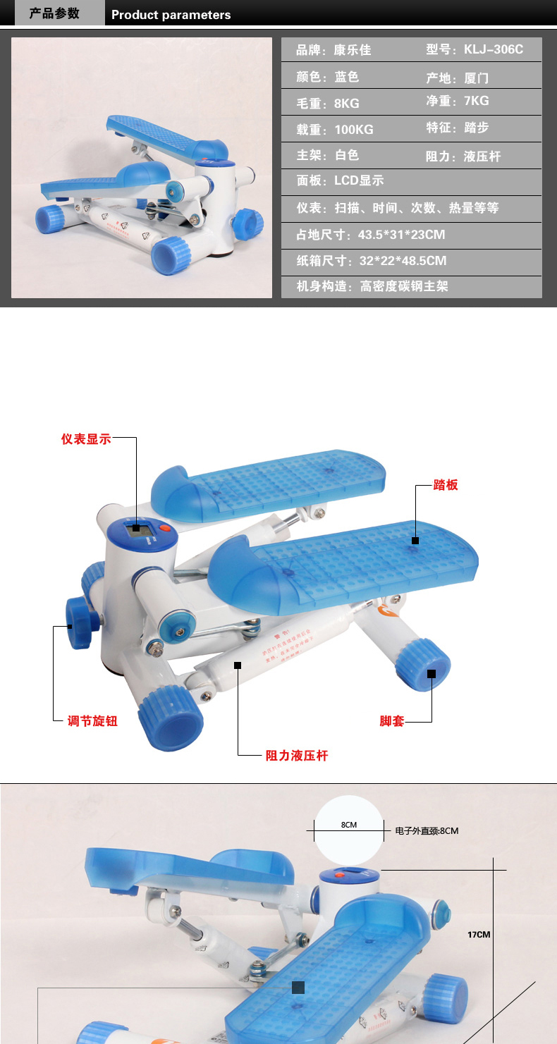 康樂佳K306CF踏步機(jī)家用靜音健身運(yùn)動(dòng)器材K306C腿部運(yùn)動(dòng)器材家用