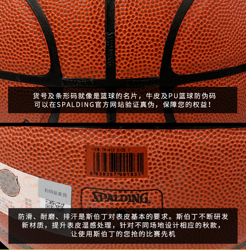 斯伯丁籃球74-412 NBA街頭灌籃SLAM室內(nèi)室外水泥地吸濕PU皮籃球