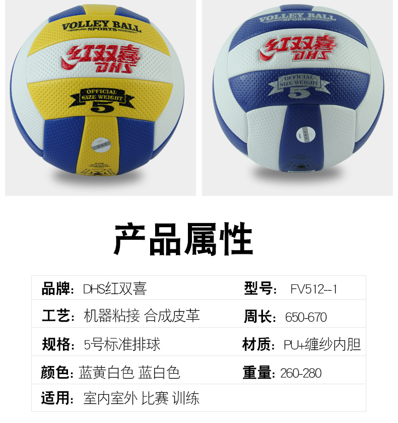 紅雙喜排球FV512-1 學(xué)生中考訓(xùn)練比賽用球PU機(jī)縫排球5號球