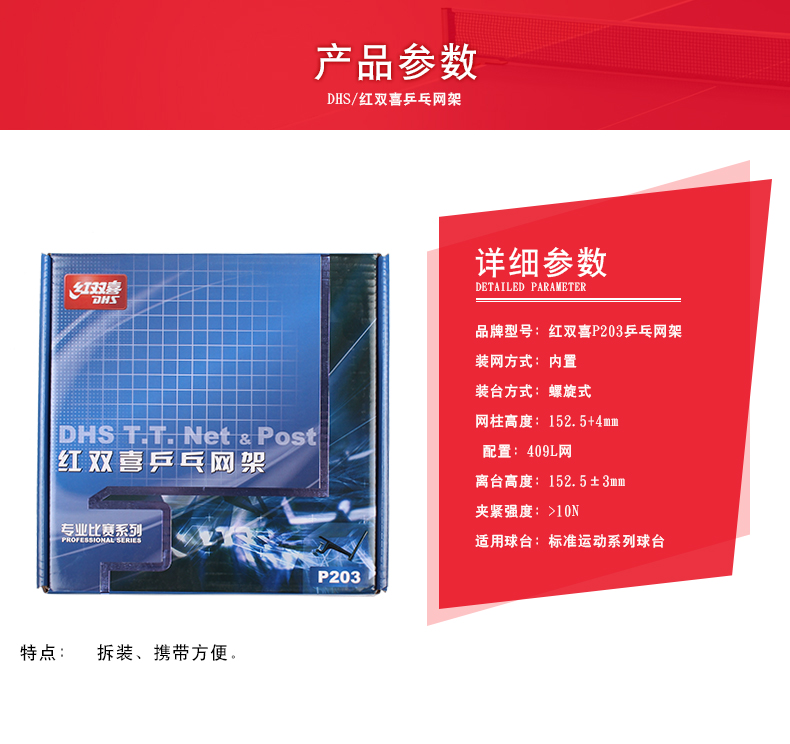 紅雙喜(DHS) P203乒乓球網(wǎng)架