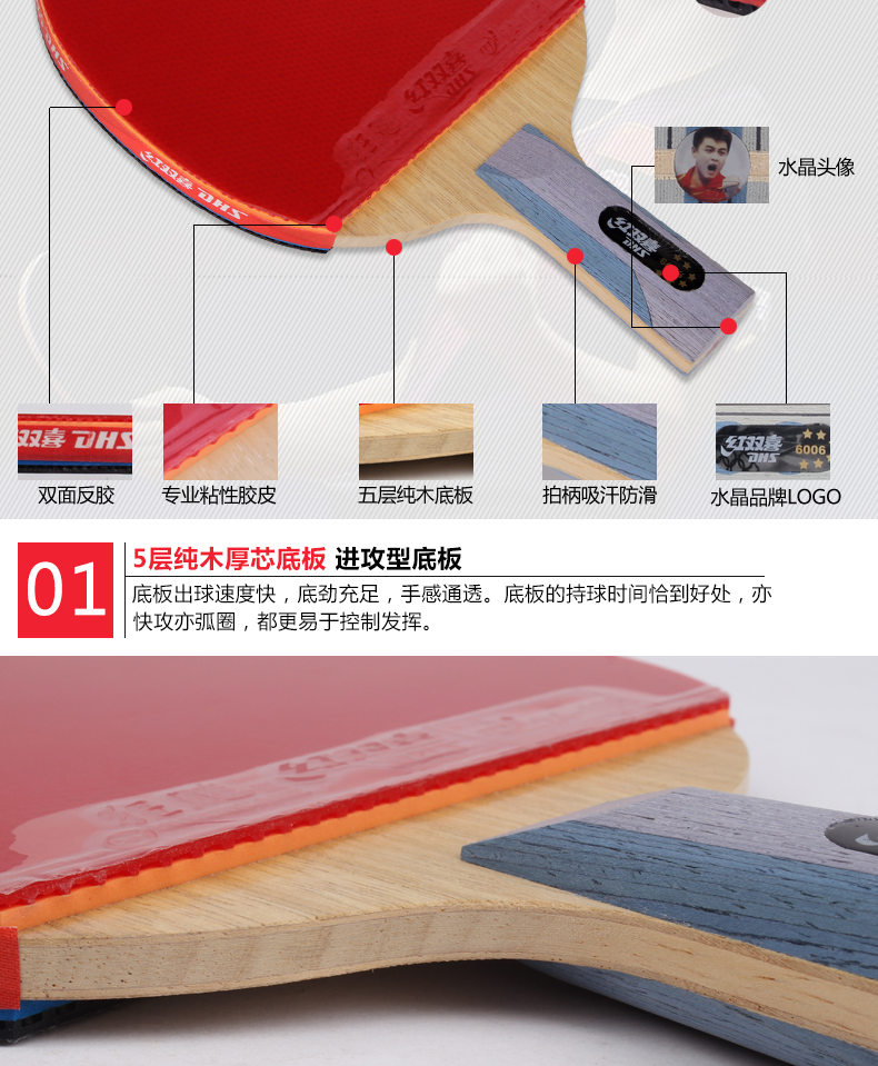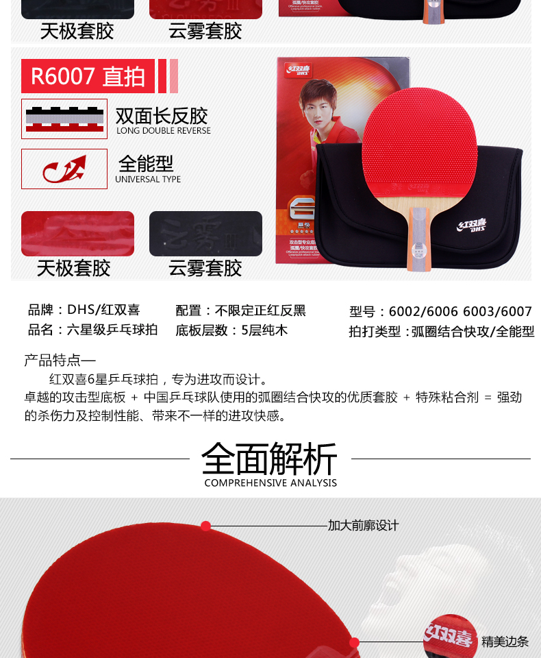 紅雙喜(DHS) R6002-R6003-R6006-R6007六星乒乓球拍