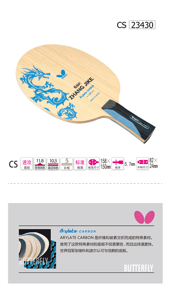 Betterfly蝴蝶23430 張繼科底板(ZHANG JIKE)23430 最新中國(guó)龍