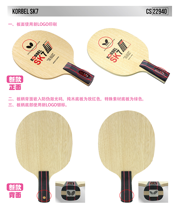 Butterfly蝴蝶22940 新科貝爾SK7(KORBEL)乒乓球底板 進攻型七層合板