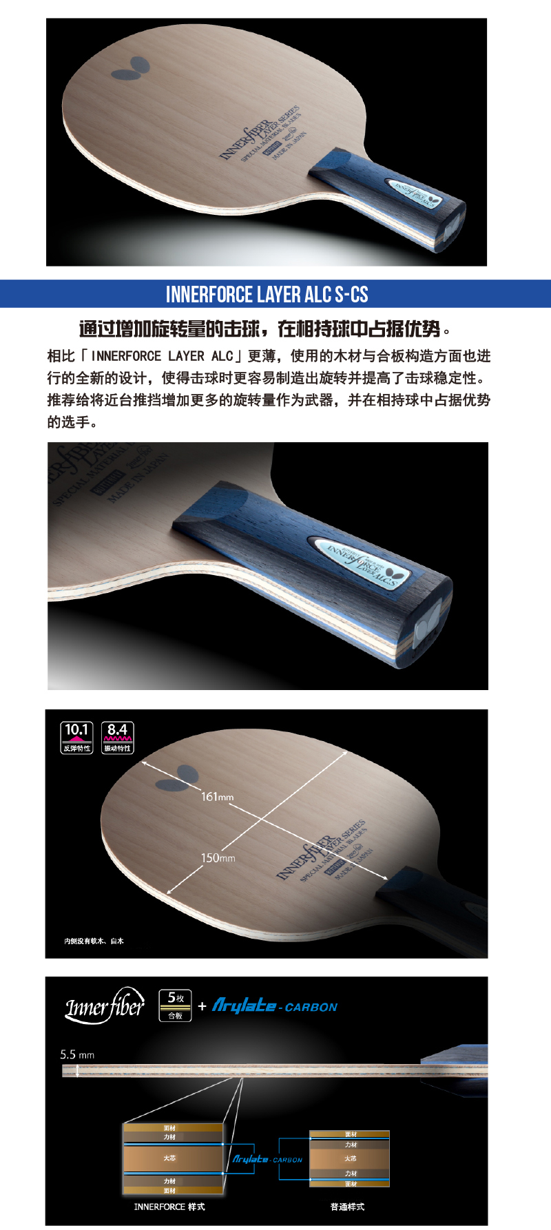 Butterfly蝴蝶23880 INNERFORCE LAYER ALC.S乒乓球底板 直拍
