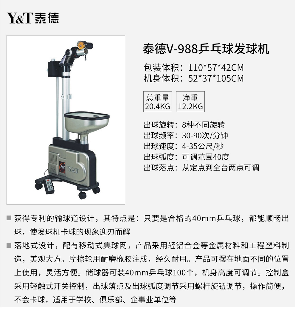 泰德V-988乒乓落地式訓(xùn)練專(zhuān)用智能乒乓發(fā)球機(jī)
