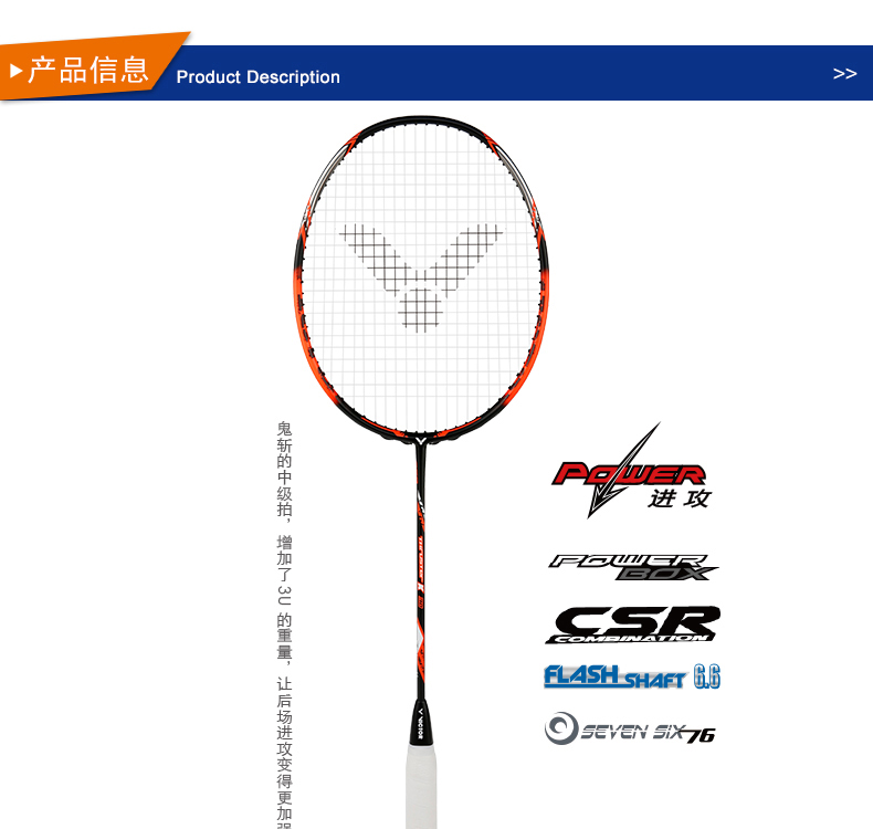 VICTOR威克多羽毛球拍單拍碳纖維業(yè)余初中級進攻類高磅 TK-220H