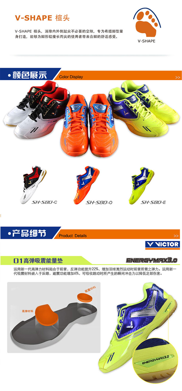 VICTOR威克多SH-S80羽毛球鞋 速度型動(dòng)力墊科技
