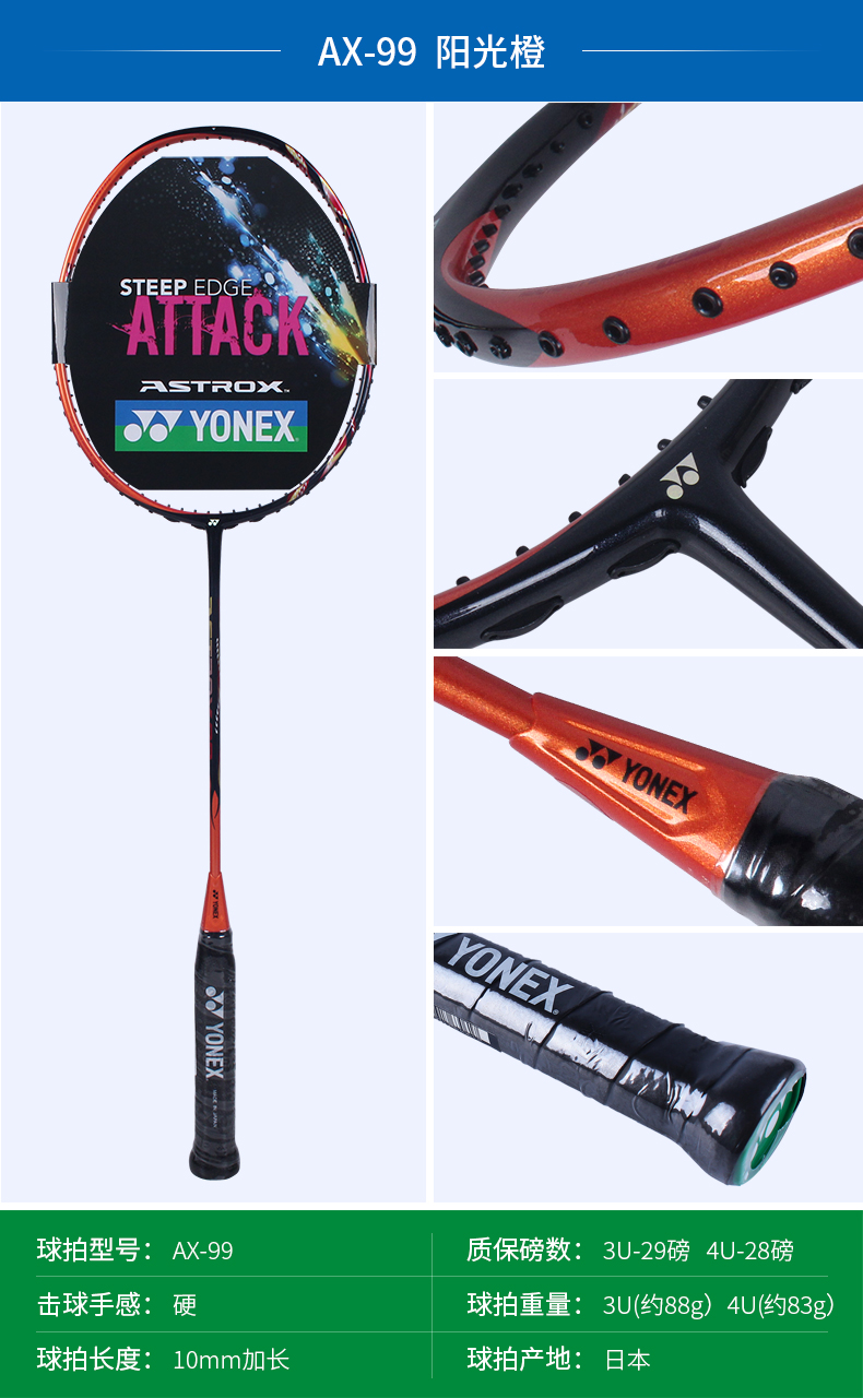 YONEX尤尼克斯羽毛球拍單拍yy進(jìn)攻型桃田賢斗AX99