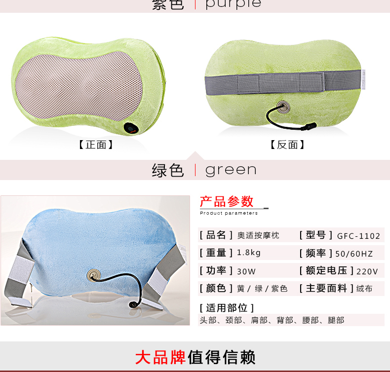 好家庭奧適頸椎多功能按摩器頸部腰背肩部按摩枕家用腰椎儀車家兩用加熱按摩正反按摩 1102
