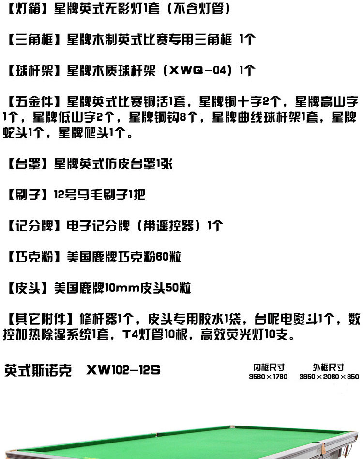 星牌 臺球桌 XW102-12S英式標(biāo)準(zhǔn)斯諾克球臺