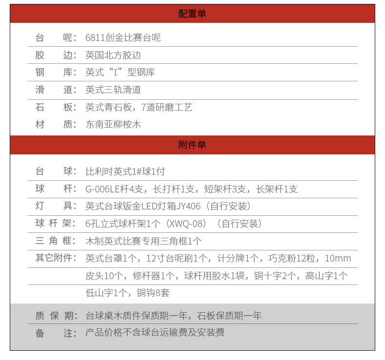 星牌 臺球桌 XW105-12英式標準斯諾克球臺(臉譜版)