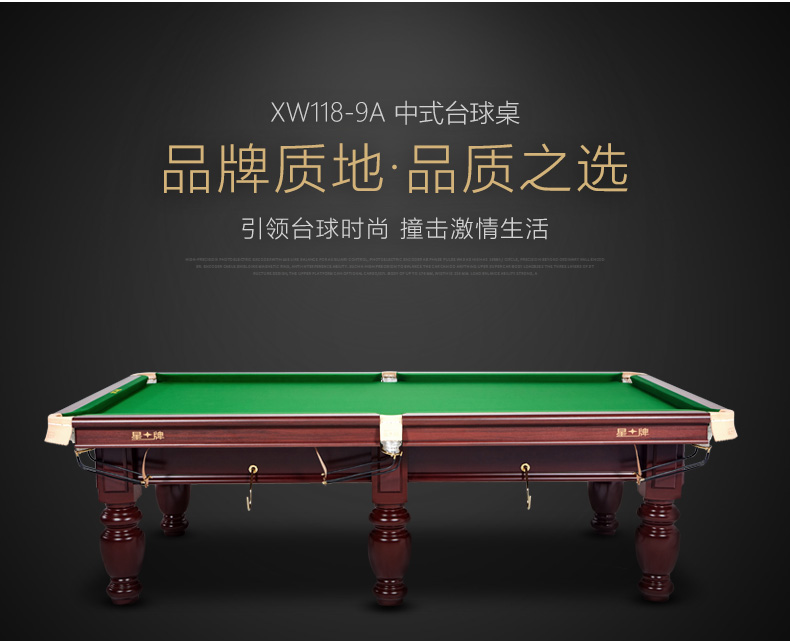 星牌 臺球桌 XW119-9A中式黑八俱樂部比賽球臺