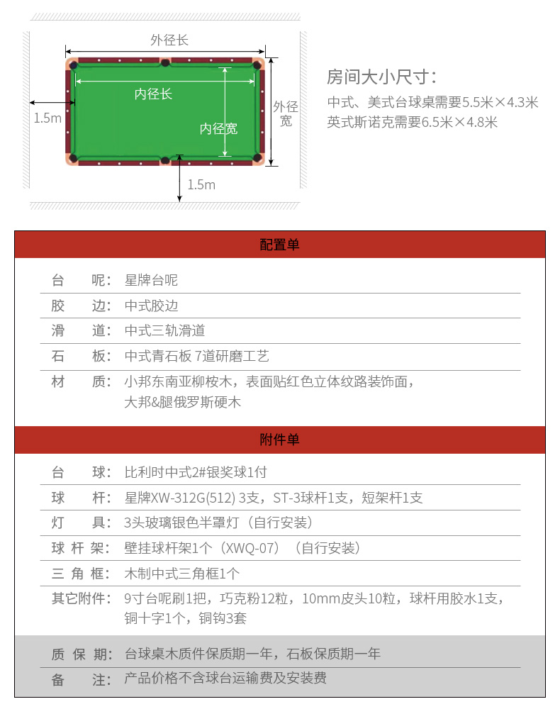 星牌 臺球桌 XW118-9A中式黑八球臺